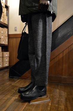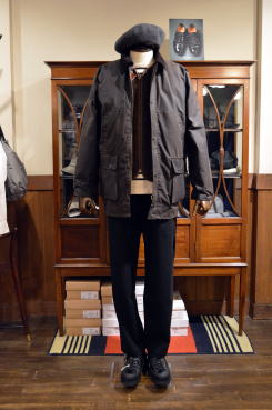 WET WAX LANDOWNER CLASSIC \40,000 (John Partridge) ウールカシミアクルーネックセーター \19,800 (Harley OF SCOTLAND) フェルテッドラムイージートラウザー \25,000 (comm.arch.) カシミヤマフラー \39,000 (ジョシュアエリス) サイドゴアブーツ ¥107,000 (フラテッリ ジャコメッティ) ウールビーバーベレー \12,000 (HAT MAKER KIJIMA TAKAYUKI) 税抜き価格 |