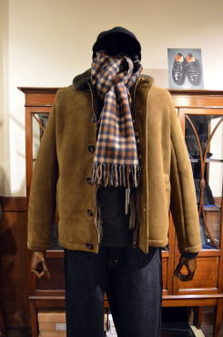 ムートンジャケット BENNETT ¥253,000 (Owen Barry) ウールカシミヤクルーネックセーター ¥27,830 (Harley OF SCOTLAND) 15.5oz DENIM WIDE 5P ¥24,200 (Sanca) KANGA ULTRA MTX ¥32,780 (LOMER) ウールメルトン6パネルキャップ ¥17,600 (HAT MAKER KIJIMA TAKAYUKI) カシミヤマフラー ¥35,200 (ジョシュアエリス) 厚手ノルディックロングホーズ ¥22,000 (ハリソン) |