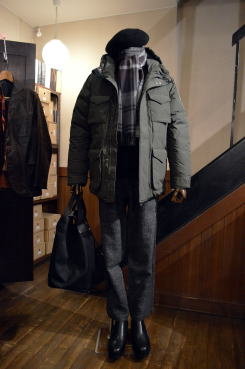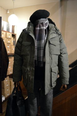 | PHデザインの英国製ダウンジャケットを使った暖かく快適なコーディネート。PHDのデルタフードジャケットのインナーには、天然素材の温もりと肌触りの良さを堪能できるハーレーのカシミヤ混セーター。コムアーチのジロンラムを使ったメルトンのパンツは、チカチカ感とは無縁の穿き心地と抜群の暖かさは、真冬に最高のパンツです。イージー仕様でリラックス感がありながらも品よく見えるのは素材の素晴らしさでしょうか。足元はサンダースの温かみのあるスウェードのハイトップチャッカ。キジマのウールカシミヤベレーに、ジョシュアエリスのカシミアマフラーを無造作に巻き付けました。冬場に地味にならないよう奇麗な色使いのマフラーを。レザーグローブはクロダグローブ。 PHのダウンジャケットは、ぜひオススメしたいダウンジャケットの逸品です。 |