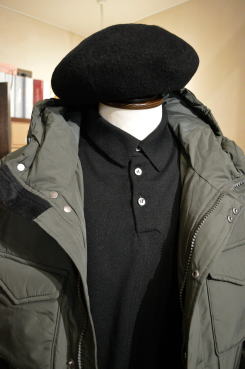 | ダウンジャケットらしからぬ無骨さと洗練された雰囲気を併せ持つ「バズス」はミリタリーの名作フィールドジャケットをモチーフにマウンテンパーカーの要素を加えてアレンジしたダウンジャケット。ピレネックスが誇る上質なフレンチダックダウンをふんだんに充填しています。 インナーの上質なメリノウールのニットポロはバズスにもよく似合います。コムアーチのウールリネンのツイードタッチのトラウザーは、アウターのツルっとしたポリエステルの質感とのコントラストがアクセントに。カシミヤマフラーはジョシュアエリス。洒落た色使いは流石ジョシュアエリスです。ベレーはキジマタカユキ、靴はジャコメッティのサイドゴアで。 ピレネックスのバズスを使って、真冬のダウンジャケットスタイルをコーディネートしてみました。 |