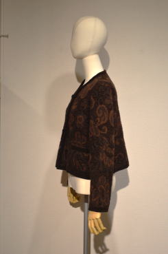 ゴブラン織をモチーフに、ベルベットタッチの意匠糸を使いジャガードテキスタイルで表現した軽量アウター。 驚くほどの軽さと柔らかな着心地、民藝的なムードを持つループボタンデザインが特徴です。