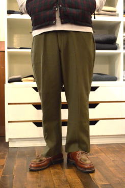 | デッドストックM51ウールトラウザー ¥13,200(tax in) 80年代米軍のデッドストックM51トラウザー。寒冷地用に作らた厚手のウールタイプのトラウザー。しっかりとしたウールサージ、色合いカタチも良く、無骨で雰囲気のあるデッドストックのトラウザーはefgの提案する着こなしにも良く似合います。敢えてデッドストックのM51を合わせるのもefgらしい着こなしの一つ。 カラー、ディテールはそれぞれに微妙に違ってたりするのもデッドストックならでは。ウエストはワンサイズでアジャストベルトが付きます。レングスはショートかレギュラー。 生産国 ? |