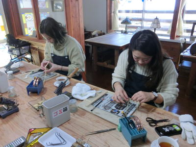 材料・道具はすべて工房で用意していますので、手ぶらでOK。その日に完成しお持ち帰りいただけます。