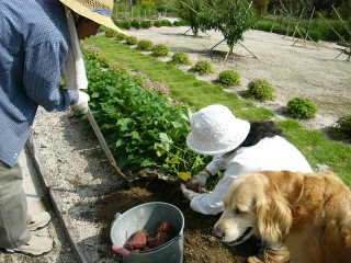 ビンペルもそわそわと朝から落ち着きがありませんでした。スコップとバケツを持ち、いざ掘り上げ開始です。