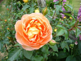 パット・オースチン ディープカップ咲きの大輪の花で、開いてからしばらくすると花が下を向いてしまいます。たぶん茎がやわらかいのでそうなるのでしょうが、花瓶に生けた時に他のバラとは違った雰囲気になります。 |