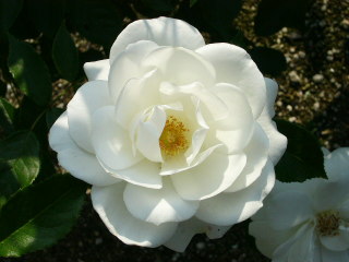 アイスバーグ 暑い時期に真っ白なバラを見ると、なんとなく涼やかな気持ちにさせてくれます。まとまって花が付くので、満開時は白いブーケのように見えます。 |
