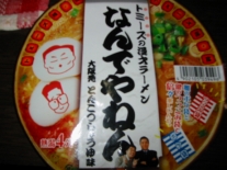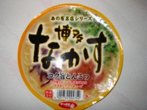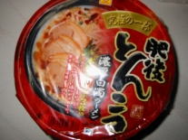 とんこつラーメンです。 麺は「氷結乾燥ノンフライ麺」ってことで、確かにめっちゃ美味かった。具もレトルトで美味い。 難を言えばスープだなあ。スープが良けりゃ五つ星だったのに、残念。 やっぱ十勝で博多とんこつってのを見抜けなかったわね(笑) 投稿者:かじりんご 判定:★★★★ 判定者:かじりんご |