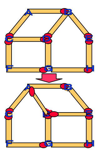 答え![]() まずC−Dのマッチ棒をA−Dに動かす。 次にD−Bのマッチ棒をD−Eに動かす。 これで家の向きが変わります。 この問題、親戚の子供に算数を教えていたとき、ワークにのっていました。1年でこの問題とは・・・。 |