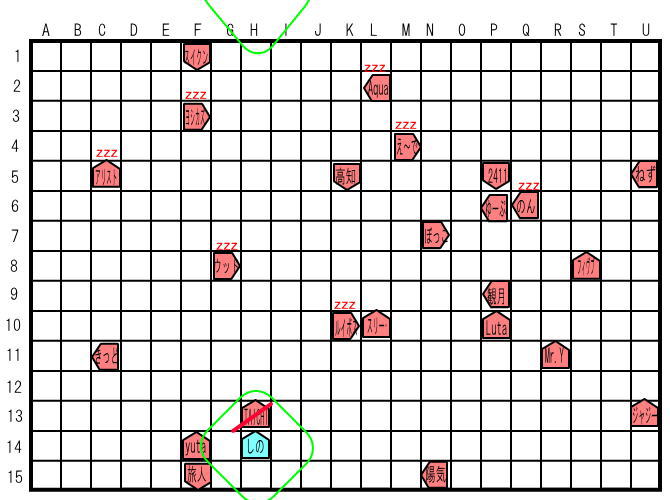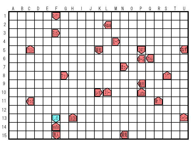 「さて、そろそろフィールド縮小を行おうと思う。詳しくはこれを見てくれ。」フィールド縮小について 次のターンより呪文処理終了後、誰もいない縦列or横列を抽選して、その列を削除していきます。 |